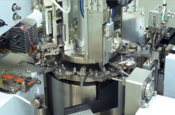 因采用了旋转方式,磁芯供给、绕线、溶接、磁芯排出各工程可同时运转,因而大大缩短了生产时间。 省空间、重量轻的小型机设计。 因旋转部采用的是DD伺服马达,可随时进行维护修理。 采用了日特独有的热压粘着方式,可自动调整加热片的个体差,使溶接温度稳定。 |